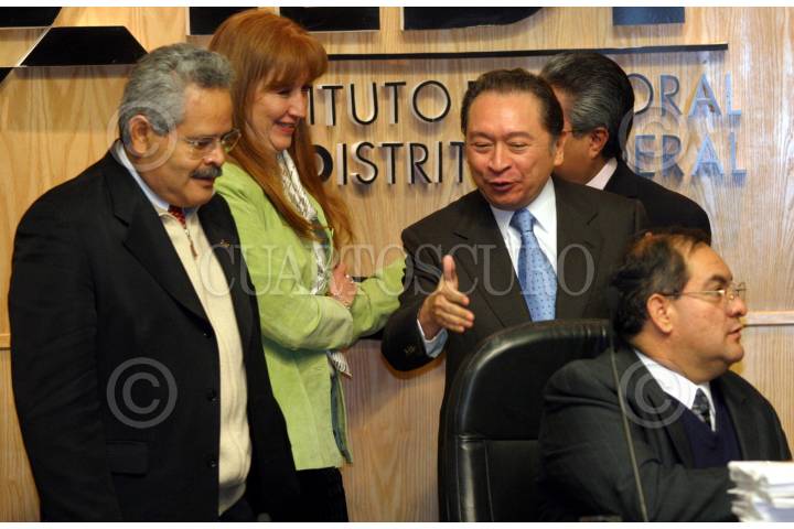 MEXICO, D.F. 15 DICIEMBRE 2004.- Javier Santiago Castillo, consejero presidente, y los consejeros electorales Rosa María Mirón Lince, Eduardo Huchim May y Adolfo Riva Palacio Neri, secretario ejecutivo previo a la sesión extraordinaria del IEDF, donde se realiza un dictamen de los topes de campaña del panista Santiago Creel Miranda, secrtetario de Gobernación. FOTO: Sandra Perdomo/CUARTOSCURO.COM