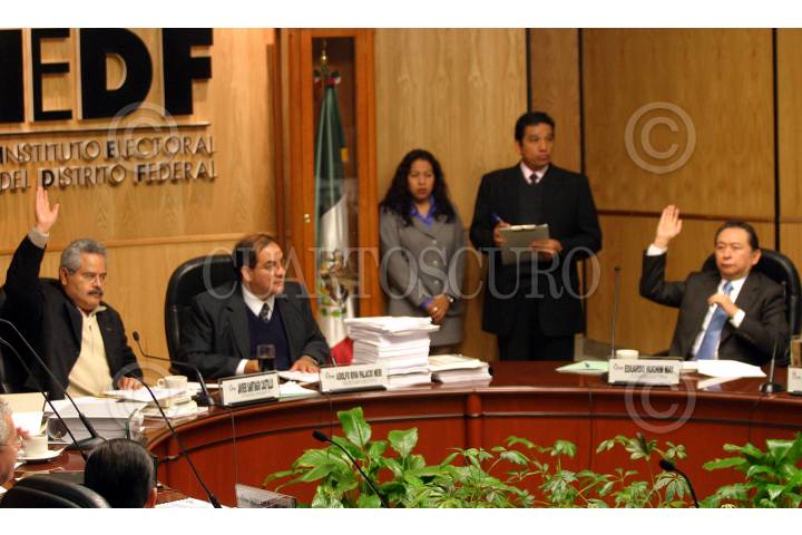 MEXICO, D.F. 15 DICIEMBRE 2004.- Votación de los consejeros electorales durante la sesión extraordinaria realizada en el IEDF, donde uno de los temas a tratar es el tope de campaña del secretario de Gobernación, Santiago Creel. FOTO: Sandra Perdomo/CUARTOSCURO.COM