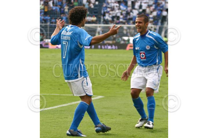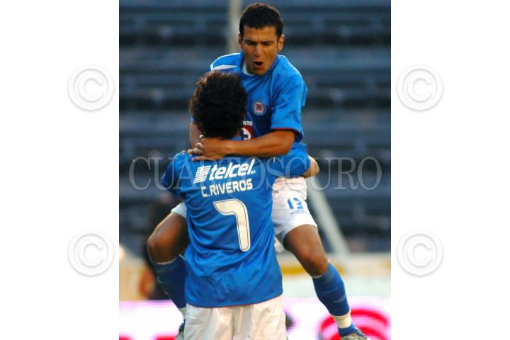 MÉXICO, D.F., 31OCTUBRE2009.- Festejo del gol de Christian Riveros en el Estadio Azul donde venció Cruz Azul 3 - 1 Atlante. FOTO: ESSENE HERNÁNDEZ/CUARTOSCURO.COM