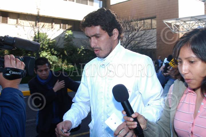 MÉXICO D.F., 25ENERO2010.- Cristian Riveros, jugador paraguayo y mediocampista del club Cruz Azul, ah su salida del hospital Ángeles del Pedregal, al cual asistió luego de conocer la noticia de que el atacante americanista Salvador Cabañas fue herido de bala cuando se encontraba en un conocido antro del sur de la ciudad de México. Cabañas fue intervenido quirurgicamente en este nosocomio. FOTO: LUIS CARBAYO/CUARTOSCURO.COM