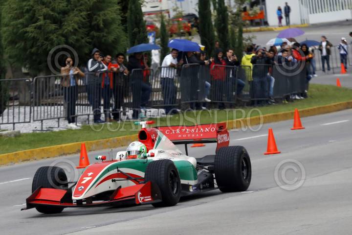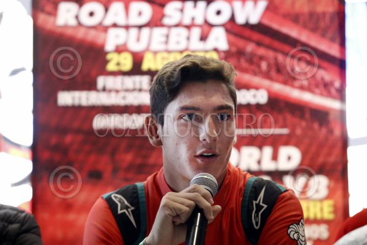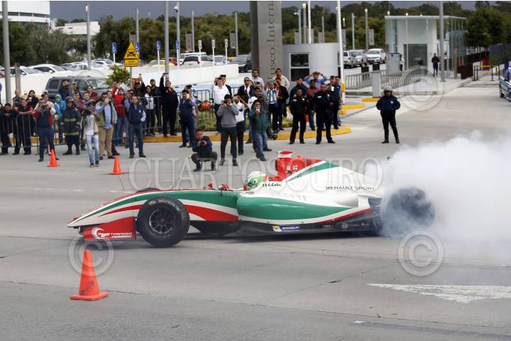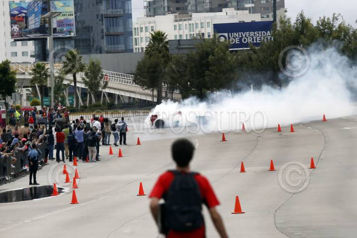 PUEBLA, PUEBLA 29AGOSTO2017.- El piloto mexicano de pruebas de Force India de la fórmula 1; Alfonso Celis, realizó una demostración frente al Museo Barroco de Puebla previo a su participación en el Road Show Puebla 2017. FOTO: HILDA RÍOS/ CUARTOSCURO.COM