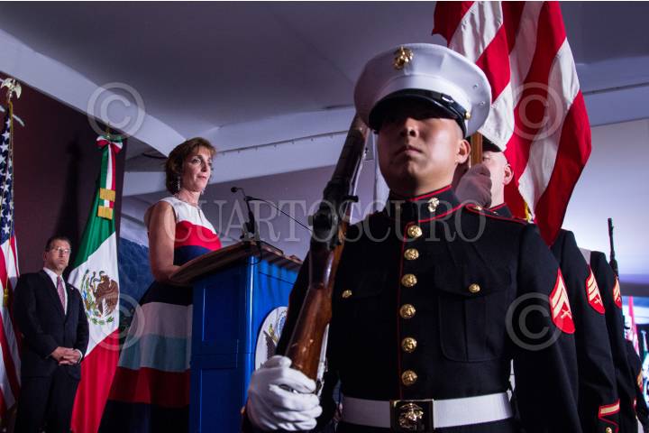 CIUDAD DE MÉXICO, 29JUNIO2017.- Roberta Jacobson, embajadora de Estados Unidos en México, ofreció unas palabras de agradecimiento y de felicidad por su estadía en el país y por los logros adquiridos entorno a la relación bilateral de las naciones esto con motivo de la celebración de la independencia de los Estados Unidos, próxima a celebrarse el 4 de julio. FOTO: GALO CAÑAS /CUARTOSCURO.COM