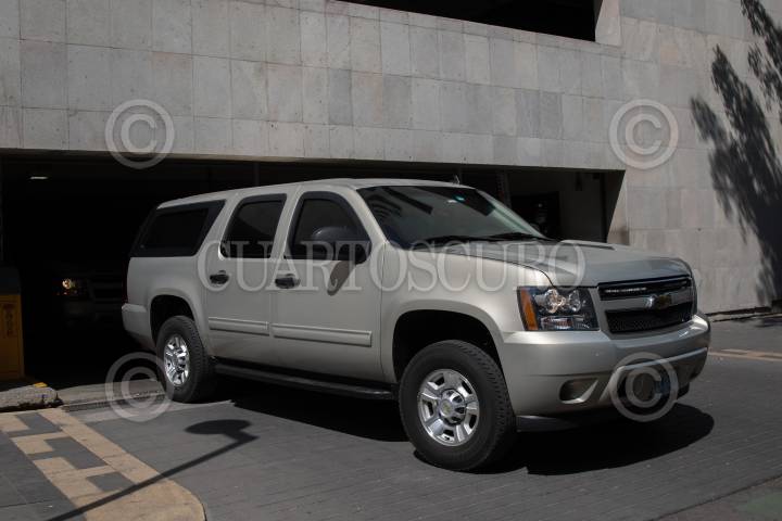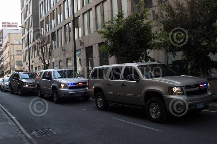 Tres camionetas blindadas y con personal armado fue el convoy en el que se trasladó Roberta Jacobson, coordinadora para la frontera sur de Estados Unidos, quien se reunió con el canciller Marcelo Ebrard en la sede de la SRE.
