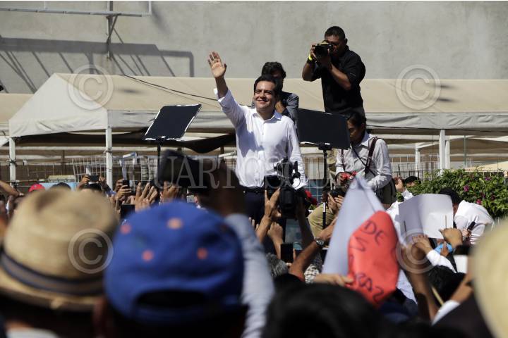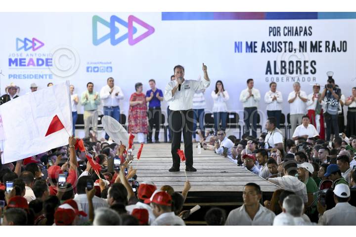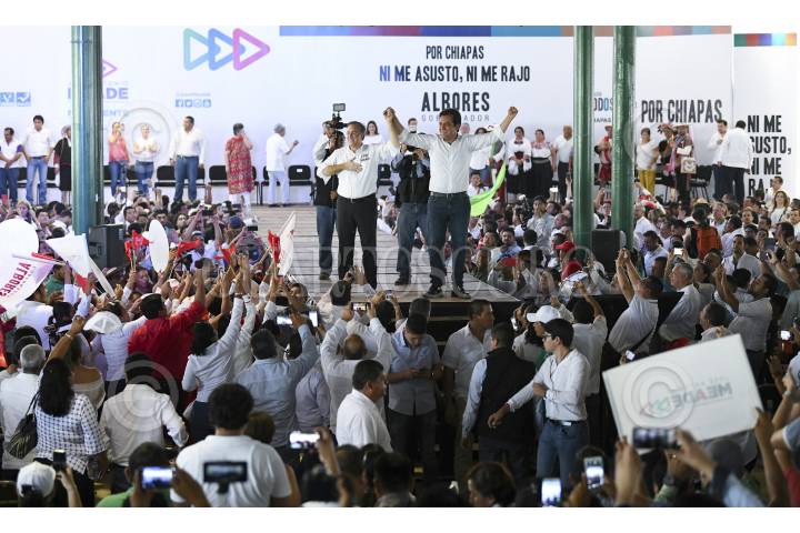 TAPACHULA, CHIAPAS, 29ABRIL2018.- José Antonio Meade, candidato a la Presidencia de la República por la coalición "Todos por México", acompaño a Roberto Albores Gleason, candidato a gobernador de coalición PRI-Partido Verde y Nueva Alianza en Chiapas; en su arranque de campaña. En acto también contó con la presencia de la esposa del candidato Meade, Juana Cuevas, y del gobernador Manuel Velasco Coello. FOTO: CUARTOSCURO.COM
