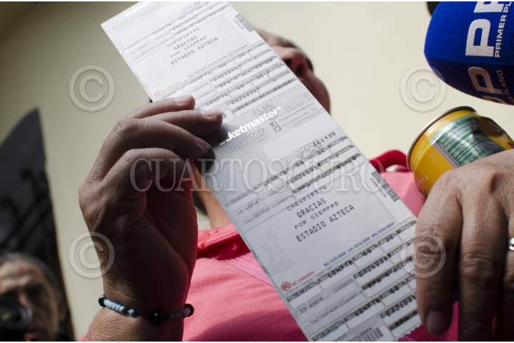 MÉXICO, D.F., 29NOVIEMBRE2014.- Una mujer sostiene su boleto para ingresar al Homenaje que se realizará mañana con motivo del fallecimeinto de Roberto Gómez Bolaños “Chespirito” en las instalaciones del Estadio Azteca. FOTO: MARÍA JOSÉ MARTÍNEZ /CUARTOSCURO.COM
