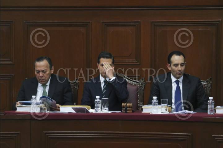 MÉXICO, D.F., 11DICIEMBRE2015.- Enrique Peña Nieto, presidente de México acompañado de Jesús Zambrano Grijalva presidente de la mesa directiva de la Cámara de Diputados y Roberto Gil, presidente de mesa directiva del Senado de la República asistieron al informe de labores del presidente de la Suprema Corte de Justicia de la Nación Luis María Aguilar Morales. FOTO: SAÚL LÓPEZ /CUARTOSCURO.COM