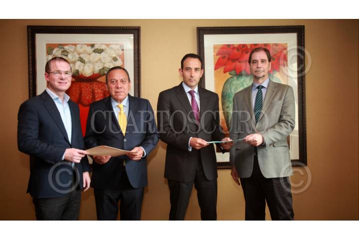 CIUDAD DE MÉXICO, 02FEBRERO2016.- Ricardo Anaya, presidente del PAN, Jesús Zambrano, presidente de la mesa directiva en la Cámara de Diputados, Roberto Gil, presidente de la mesa directiva del Senado de la República y Agustín Basave, presidente del PRD, firmaron la solicitud para que la Comisión Bicameral de Seguridad Nacional expida a la brevedad un protocolo para la prevención, identificación y respuesta inmediata frente a indicios sobre la posible infiltración del crimen organizado en candidaturas y Cámaras de los Congresos federal y locales. FOTO: PAN /CUARTOSCURO.COM