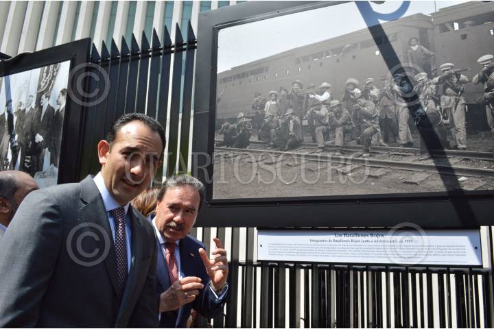 CIUDAD DE MÉXICO, 14ABRIL2016.- Roberto Gil Zuarth, presidente de la mesa directiva del Senado, y Emilio Gamboa Patrón, coordinador de los senadores del PRI, inauguraron la exposición fotográfica "Rumbo a la Constitución de 1917", montada en las rejas del Senado. FOTO: MOISÉS PABLO /CUARTOSCURO.COM