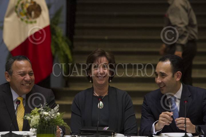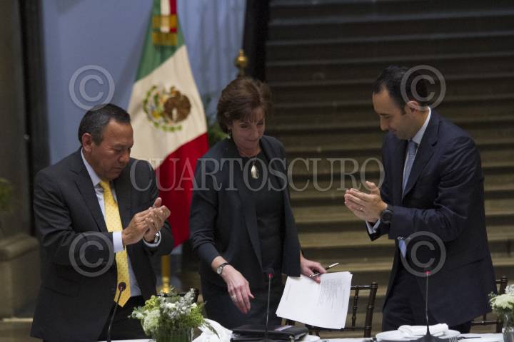 CIUDAD DE MÉXICO, 09AGOSTO2016.- Jesús Zambrano, presidente de la mesa directiva del Senado de la República; Roberta Jacobson, embajadora de Estados Unidos, y Roberto Gil Zuarth, presidente del Senado de la República, comieron en la vieja casona de Xicoténcatl en donde los legisladores le ofrcieron una comida para estrechar lazos con la nueva funcionaria. FOTO: MOISÉS PABLO /CUARTOSCURO.COM