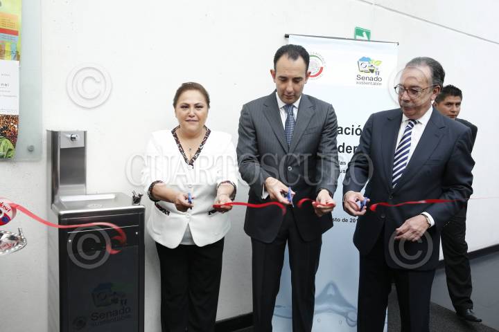 CIUDAD DE MÉXICO, 10AGOSTO2016.- La senadora Silvia Garza y el presidente del Senado, Roberto Gil Zuarth, presentaron el programa Bebederos Sustentables en el Senado de la República. FOTO: CUARTOSCURO.COM