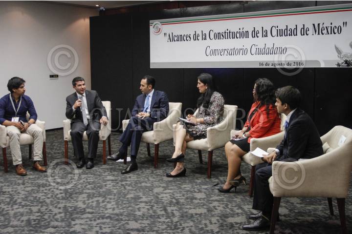CIUDAD DE MÉXICO, 16AGOSTO2016.- Mauricio Tabe Echartea, presidente del PAN local, y Roberto Gil Zuarth participaron en el conversatorio ciudadano "Alcances de la Constitución de la Ciudad de México", realizado en el Senado de la República. FOTO: ISAAC ESQUIVEL /CUARTOSCURO.COM