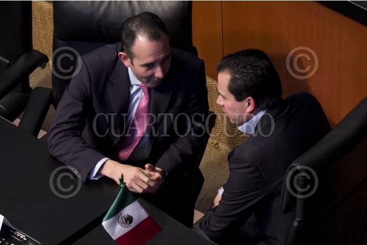 CIUDAD DE MÉXICO, 14FEBRERO2017.- Los senadores Mariana Gómez del Campo, Emilio Gamboa y Roberto Gil Zuarth, en la sesión de la Cámara de Diputados. FOTO: SENADO /CUARTOSCURO.COM
