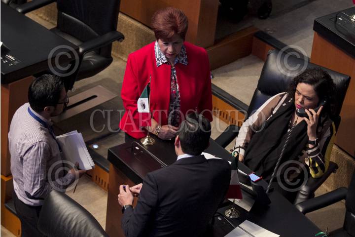 CIUDAD DE MÉXICO, 16FEBRERO2017.- El senador priista Joel Ayala, y la senadora panista Mariana Gómez del Campo, durante la Sesión en el Senado. FOTO: GALO CAÑAS /CUARTOSCURO.COM