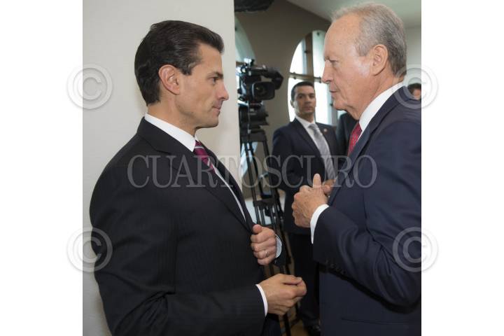 MÉXICO, D.F., 14ENEO2016.- El Presidente Enrique Peña Nieto se reunió hoy con los integrantes del Consejo Mexicano de Negocios, ante quienes destacó que las empresas representadas en ese organismo invirtieron, entre 2013 y 2015, más de 87 mil millones de dólares, cifra similar a la Inversión Extranjera Directa que recibió el país en el mismo periodo, que fue de 91 mil millones de dólares. En la imagen el mandatario coversa con el empresario Roberto Hernández. FOTO: PRESIDENCIA /CUARTOSCURO.COM