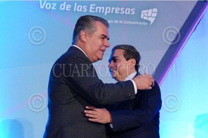 CIUDAD DE MÉXICO, 11JUNIO2024.- Francisco Cervantes Díaz, presidente de Consejo Coordinador Empresarial, y Roberto Moya, presidente de la Secretaria de Economía en el Senado, se saludaron durante la entrega del Premio Nacional de Calidad 2024, realizado en el Club de Banqueros. FOTO: GRACIELA LÓPEZ /CUARTOSCURO.COM