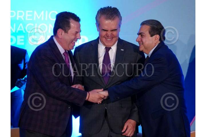 CIUDAD DE MÉXICO, 11JUNIO2024.- Fadlala Akabai, secretario de Desarrollo Económico del Gobierno de la capital; Francisco Cervantes Díaz, presidente de Consejo Coordinador Empresarial, y Roberto Moya, presidente de la Secretaria de Economía en el Senado, durante la entrega del Premio Nacional de Calidad 2024, realizado en el Club de Banqueros. FOTO: GRACIELA LÓPEZ /CUARTOSCURO.COM