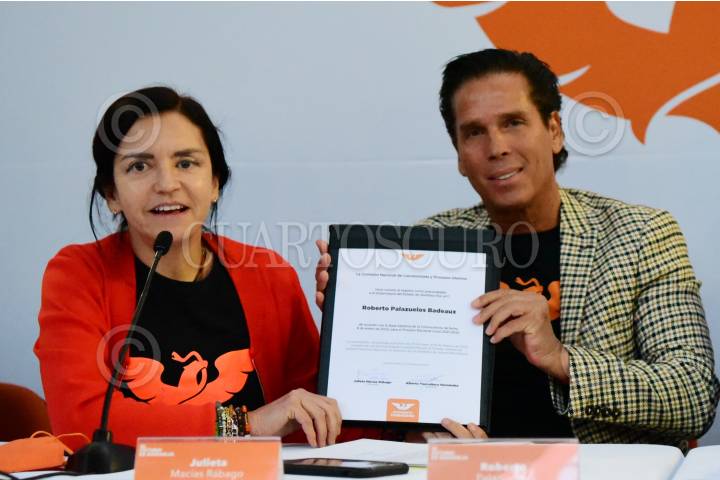 Roberto Palazuelos, actor y empresario se registró este viernes como aspirante a precandidato a gobernador de Quintana Roo en el proceso interno de Movimiento Ciudadano, ante la presencia de Julieta Macías Rábago, presidenta de la Comisión Nacional de Convenciones y Procesos Internos.