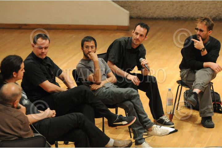 MÉXICO, D.F., 07JULIO2009.- Mesa Plenaria de "PRISMA-FORUM", el cual abordan temas como: "El Arte y Ciencia de la Biología al Software y de regreso". En la imagen, Philipp Bandelot, Carlos López, Georg Hobmeier, Robin Meier, J. Milo Taylor y Bilwa. FOTO: ARTURO LÓPEZ/CUARTOSCURO.COM