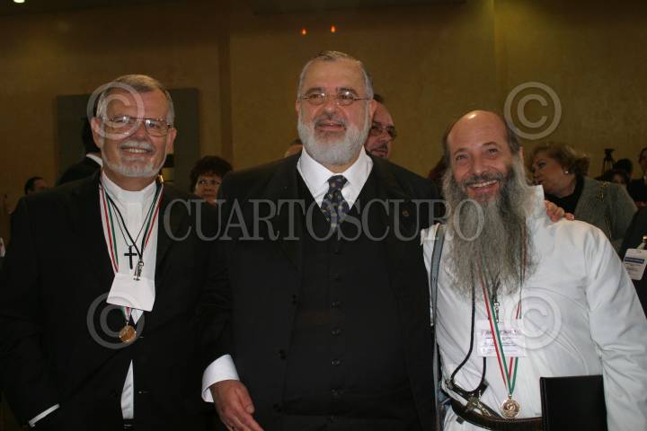 MEXICO, D.F. 13DICIEMBRE2006.- Jose Luis Soberanes, presidente de la Comisión Nacional de Derechos Humanos se toma una fotografia con el padre Robin Hoover y el padre Flor de María ganadores del premio Nacional de Derechos Humanos 2006. FOTO: NELLY SALAS/CUARTOSCURO.COM