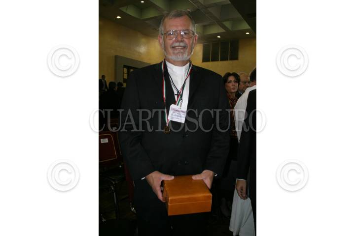 MEXICO, D.F. 13DICIEMBRE2006.- El padre Robin Hoover, ganador del premio Nacional de Derechos Humanos 2006 al termino de la ceremonia de premiación. FOTO: NELLY SALAS/CUARTOSCURO.COM