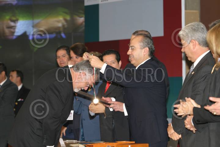 MEXICO, D.F. 13DICIEMBRE2006.- El padre Robin Hoover, recibe de manos del presidente Felipe Calderón Hinojosa el premio Nacional de Derechos Humanos 2006 en la residencia oficial de los Pinos. FOTO: NELLY SALAS/CUARTOSCURO.COM