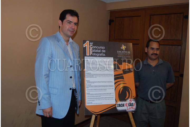 ZACATECAS, ZACATECAS., 07SEPTIEMBRE2007. El lic. Rafael Flores Medoza, secretario de turismo del gobierno del estado de Zacatecas y el Lic. Jaime Robledo Martínez, encargado del centro de documentación de la fototeca del estado de Zacatecas en la presentación de la convocatoria del primer concurso estatal de fotografia turistica 2007. FOTO: CARLOS SEGURA/CUARTOSCURO.COM