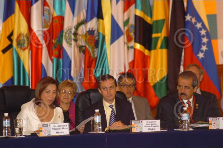 MÉXICO, D.F., 01AGOSTO2008.- En la Secretaria de Relaciones Exteriores, se llevo acabo la Inauguración de la Primer Reunión de Ministros de Salud y Educación para combatir el VIH, en Latino américa y el Caribe, a dicho foro asistieron, la Lic. Josefina Vazquez Mota, el Embajador Juan Manuel Gómez Robledo, el Dr. Jose Angel Cordova y la Dra.Thoraya A.Obay. FOTO: SERGIO VAZQUEZ TORRES/CUARTOSCURO.COM