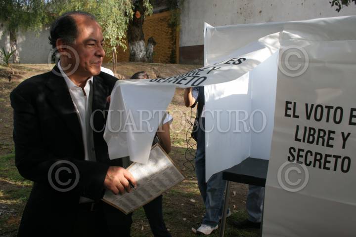 SAN LUIS POTOSI, SAN LUIS POTOSI, 05JULIO2009.- Juan Ramiro Robledo, candidato a la gobernatura por el Partido de la Revolución Democrática (PRD), emitió su voto a las 9 de la mañana en la casilla de su distrito correspondiente. FOTO:RICARDO CASTELAN/CUARTOSCURO.COM
