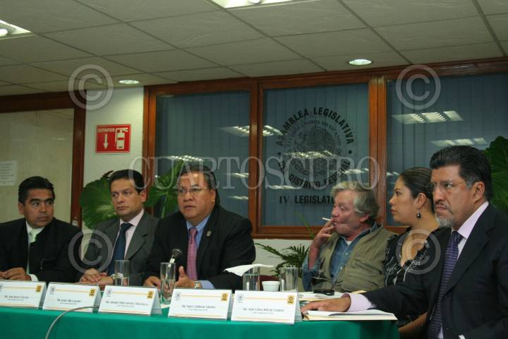 MÉXICO, D.F. 04SEPTIEMBRE2007.- Los diputados locales Juan Carlos Beltrán, Nancy Càrdenas, Salvador Martínez Della Rocca, Jesús Villa, Juan Bustos, Nazario Sánchez durante una conferencia de prensa en la Asamblea. FOTO: PAOLA HIDALGO/CUARTOSCURO.COM