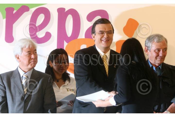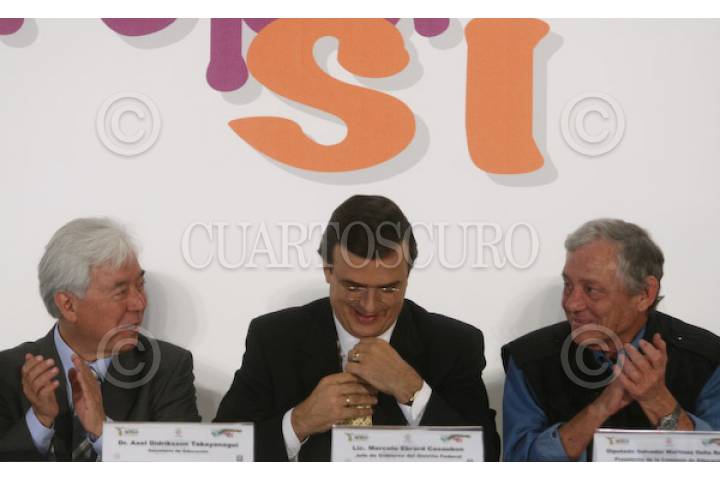 MÉXICO, D.F., 04NOVIEMBRE2008.- El Senador Graco Ramirez Ramírez, el titular de Educación capitalino, Axel Dridikson Marcelo Ebrard Casaubón y el Diputado Salvador Martínez Della Rocca durante la entrega becas a mil estudiantes de Educación Superior. FOTO: SÁSHENKA GUTIERREZ/CUARTOSCURO.COM