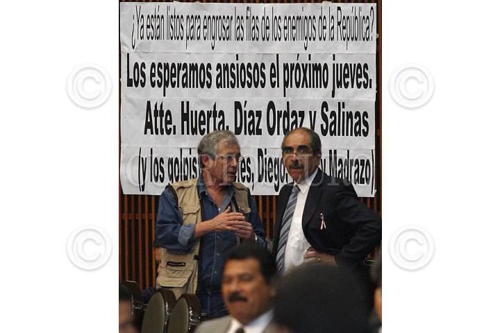 MEXICO, D.F. 05ABRIL2005.- Los diputados perredistas, Salvador Martínez de la Rocca y Pablo Gòmez dialogan durante la sesiòn en San Làzaro. FOTO: Sandra Perdomo/CUARTOSCURO.COM