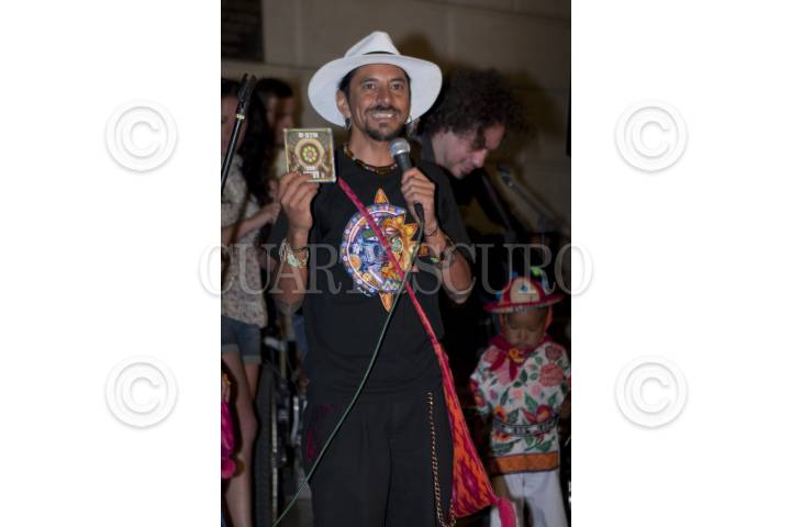 MÉXICO, D.F., 22MAYO2012.- El exvocalista de La Maldita Vecindad y los Hijos del Quinto Patio, miembro del colectivo AHO, mostró el disco "Estación Wirikuta" que produjo el colectivo al finalizar la conferencia de prensa que ofrecieron con motivo del Wirikuta Fest, próximo a realizarse el 26 de este mes en el Foro Sol, el movimiento pretende denunciar la acción de las mineras canadienses en territorio wixarika para extraer metales preciosos en zona sagrada para este pueblo indigena, con la anuencia de los gobiernos estatles y federales. Los fondos se prentenden destinar a proyectos de desarrollo y a l a defensa de la zona sagrada. FOTO: FRANCISCO RODRÍGUEZ /CUARTOSCURO.COM