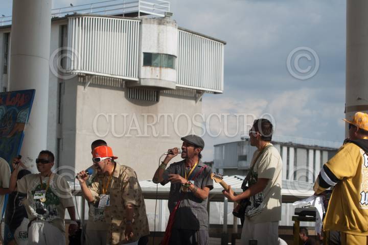MÉXICO, D.F. 25SEPTIEMBRE2012.- Hoy se entregaron en el reclusorio de Santa Martha Acatitla los premios del Primer Concurso Virtual para la Reinserción Social de Bandas en Reclusión “Rolando Rolas: Rocanrol Tras Las Rejas”, organizado por la Subsecretaría de Sistema Penitenciario del DF, la Secretaría de Cultura del DF, la Delegación Coyoacán y la productora independiente Charco Records, donde la banda "Fuera de Control" fue premiada como la banda ganadora. Al acto asistió Rocco vocalista de Mestizo, que al final se aventó un "palomazo" con FOTO: FRANCISCO RODRÍGUEZ /CUARTOSCURO.COM