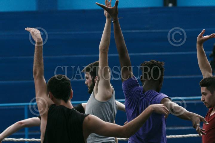 GUANAJUATO, GUANAJUATO, 22OCTUBRE2017.- Los integrantes del Ballet Nacional de Marsella ensayan previo a su presentación en la cancha de cristal de la Universidad de Guanajuato. Los franceses vienen con su espectáculo "Rocco", como parte del programa del 45 Festival Internacional Cervantino. FOTO: MOISÉS PABLO /CUARTOSCURO.COM