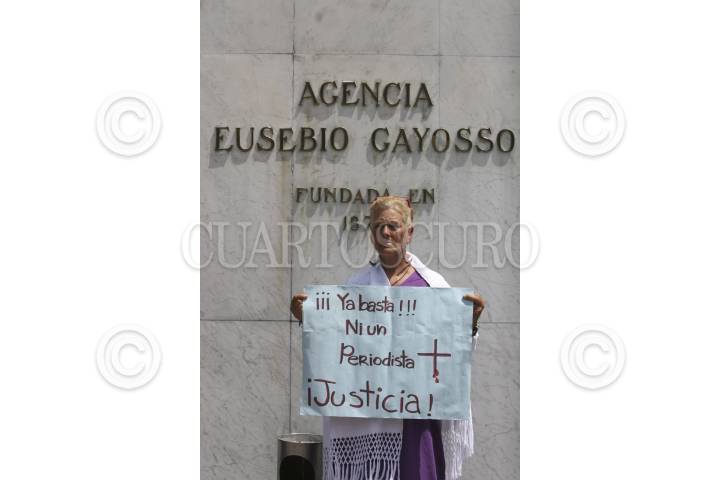 MÉXICO, D.F., 02SEPTIEMBRE2011.- Muestras de indignación por el asesinato de las periodistas Rocío González Trapaga, y Ana María Marcela Yarce Viveros, cuyos cadáveres fueron encontrados el día de ayer en el parque "El Mirador" en la Colonia Las Maravillas delegación Iztapalapa, durante su velorio que se realizó en una funeraria de la colonia del Valle. FOTO: SAUL LOPEZ/CUARTOSCURO.COM