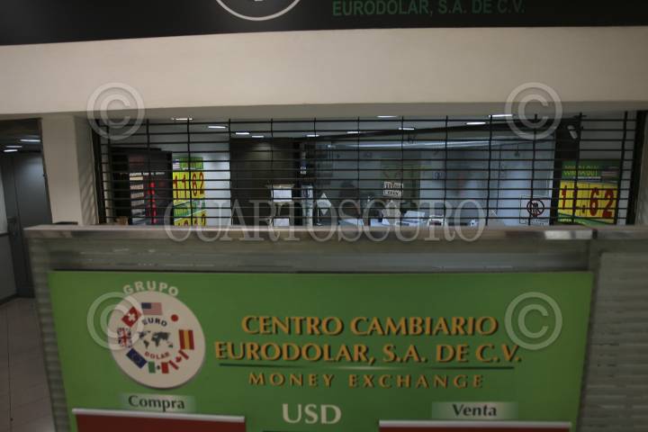 MÉXICO, D.F., 03SEPTIEMBRE2011.- La casa de cambio Eurodólar, ubicada en el aeropuerto capitalino Términal 1, de la cual era socia Rocío González Trápaga fue intervenida pericial y ministerialmente con la finalidad de recabar evidencias e indagar las operaciones que ahí se realizaron, indicó el procurador Miguel Ángel Mancera. Al jueves pasado Rocío González Trapaga y Marcela Yarce Viveros, fueron localizadas sin vida en un parque de la delegación Iztapalapa, una era periodista independiente y la otra trabaja en la revista Contralínea. El funcionario Mancera señaló que se siguen tres líneas de investigación; el robo de un millón de pesos que Trapaga había retirado de la mencionada casa de cambio, un vínculo con una revista inmobiliaria que se relaciona con otro asesinato ocurrido la misma semana y los motivos pasionales. FOTO: IVÁN MENDEZ/CUARTOSCURO.COM