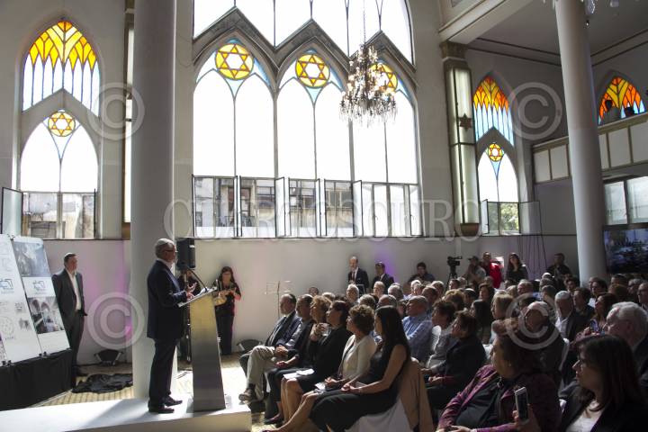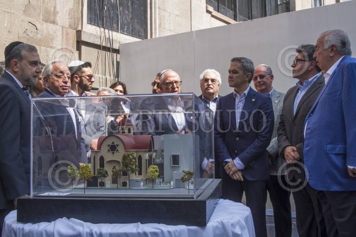 CIUDAD DE MÉXICO, 06NOVIEMBRE2016.- Miguel Ángel Mancera, Jefe de Gobierno, acudió a la presentación del proyecto de construcción del Centro de Documentación e Investigación Judío de México (CDIJUM), el cual estará a un lado de la sinagoga "Rodfe Sedek", de la comunidad Maguén David, ubicada en la calle de Córdoba 238, en la colonia Roma. En una ceremonia en la cual se mostró la maqueta de este centro y se colocó la primera piedra. El anfitrión del mandatario capitalino fue Rubén Goldberg, presidente del CDIJUM. FOTO: MOISÉS PABLO /CUARTOSCURO.COM