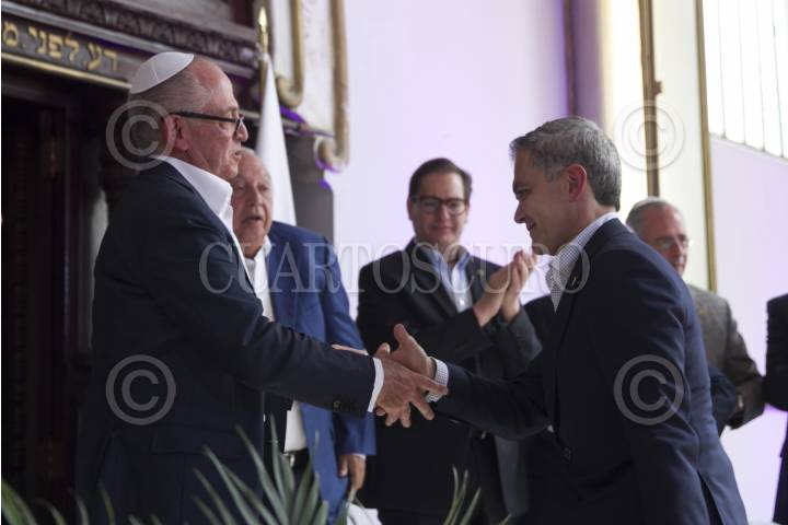 CIUDAD DE MÉXICO, 06NOVIEMBRE2016.- Rubén Goldberg, presidente del Centro de Documentación e Investigación Judío de México, y Miguel Ángel Mancera, Jefe de Gobierno, encabezaron la presentación del proyecto de construcción de un edificio sede del CDIJUM, el cual estará a un lado de la sinagoga "Rodfe Sedek", de la comunidad Maguén David, ubicada en la calle de Córdoba 238, en la colonia Roma. FOTO: MOISÉS PABLO /CUARTOSCURO.COM
