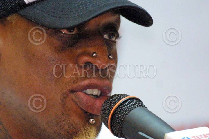 MONTERREY, NUEVO LEON 08OCTUBRE2004 El basquetbolista Dennis Rodman, durante la conferencia de prensa, donde se anuncio que reforzara al equipo mexicano Fuerza Regia, que participa en la Liga Nacional de Baloncesto Profesional. FOTO: Jorge López/CUARTOSCURO.COM