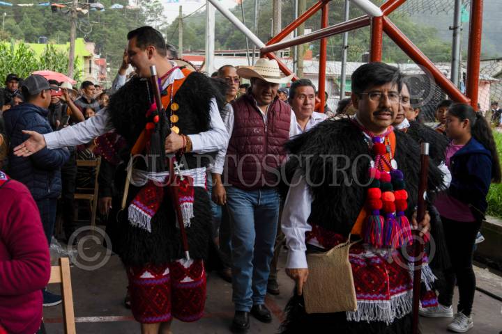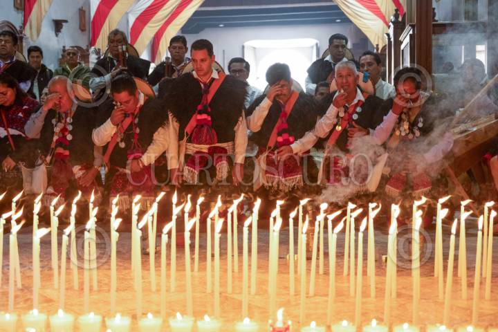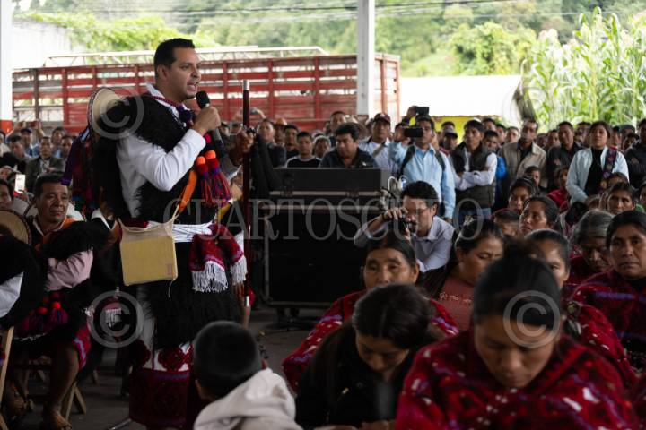 TENEJAPA, CHIAPAS, 30 JULIO 2025.- Hugo Aguilar Ortiz, ministro electo y perfilado para presidir la Suprema Corte de Justicia de la Nación, y Rodrigo Arístides Guerrero, también electo como ministro en la pasada elección del Poder Judicial, realizan una gira de agradecimiento en Los Altos de Chiapas. En Tenejapa, fueron recibidos por autoridades tradicionales, quienes les ofrecieron una ceremonia en la iglesia de la cabecera municipal. Posteriormente, se dirigieron a pie hasta la cancha pública, donde ambos ofrecieron unas palabras de agradecimiento y reconocimiento. FOTO: ISABEL MATEOS HINOJOSA / CUARTOSCURO.COM