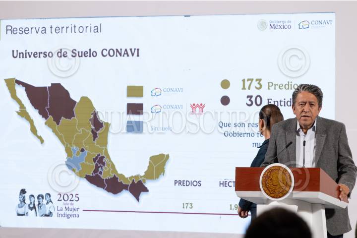 CIUDAD DE MÉXICO, 14JULIO2025.- Rodrígo Chávez Contreras, titular de la Conavi, ofrece detalles de los avances del Programa Nacional de Vivienda o Viviendas para el Bienestar, durante la Mañanera del Pueblo. FOTO: MOISÉS PABLO/CUARTOSCURO.COM