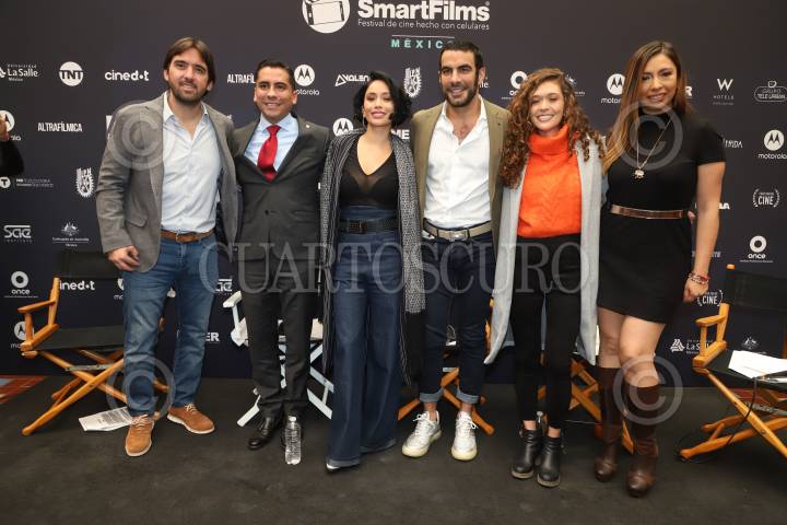 Rodrigo Díaz, Óscar Matamoros, Maya Zapata, Javier Jatti, Adriana Sánchez, y Andrea Mercado en la conferencia Smart Films