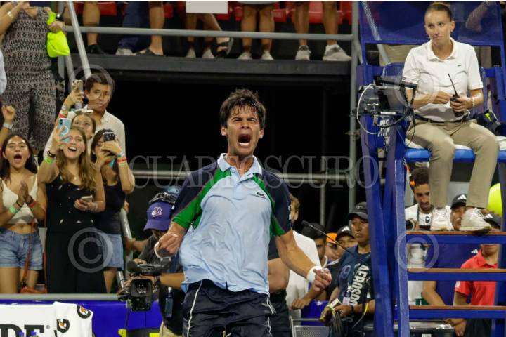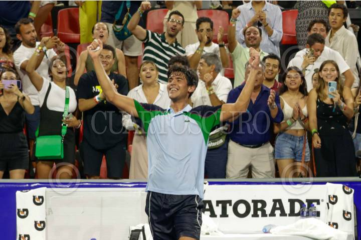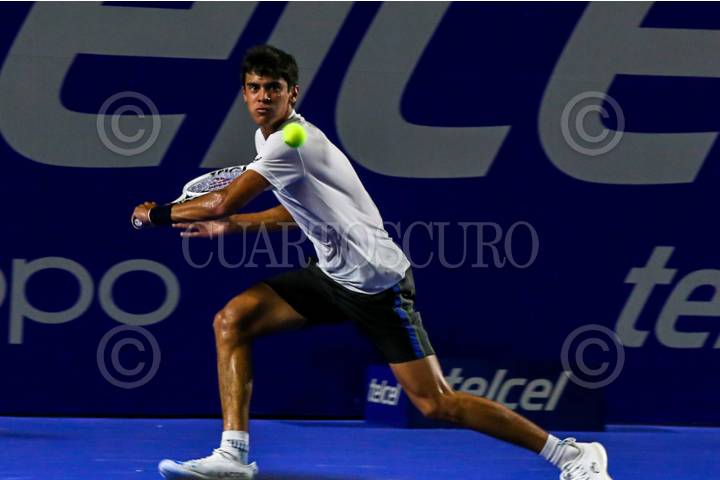 ACAPULCO, GUERRERO, 25FEBRERO2025.- El joven tenista mexicano Rodrigo Pacheco, hace historia al vencer al australiano Aleksandar Vukic, en el Abierto Mexicano de Tenis 2025, en lo que fue su primer victoria en in partido de ATP. FOTO: CARLOS ALBERTO CARBAJAL/CUARTOSCURO.COM