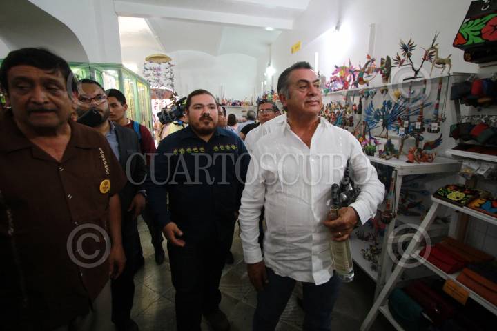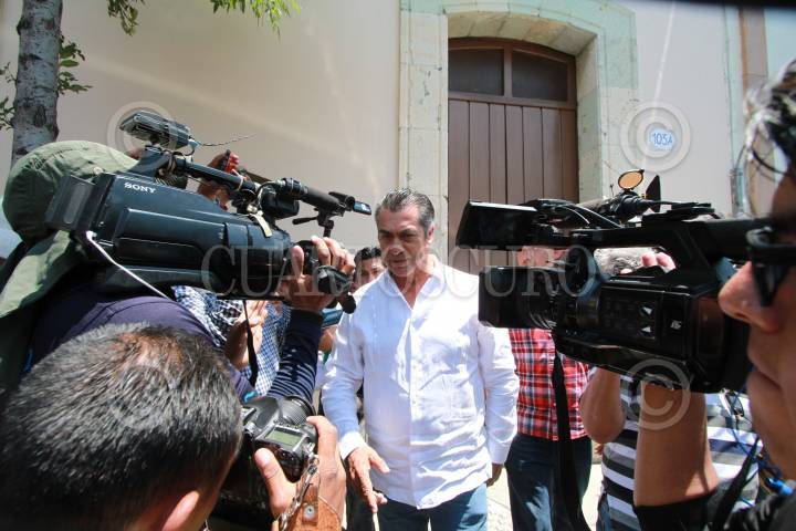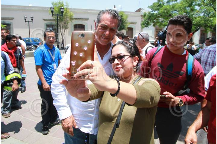 OAXACA, OAXACA, 19ABRIL2018.- El candidato independiente a la presidencia de México, Jaime Rodríguez Calderón conocido como “El Bronco” realizó una gira de trabajo por la ciudad de Oaxaca donde sostuvo una serie de reuniones privadas y realizó un recorrido por el centro de la ciudad de Oaxaca, ahí platicó con diversos transeúntes con quienes se comprometió a apoyar diversos proyectos productivos. El aspirante ofreció también una conferencia de prensa en la que se refirió a diversos temas, entre ellos se dijo listo para el debate a realizarse en próximos días sin embargo omitió su estrategia para sorprender a los demás candidatos, señaló. Asimismo dijo que la problemática magisterial principalmente con los integrantes de la Coordinadora Nacional de los Trabajadores de la Educación (CNTE) se resolverá a través del diálogo, para ello dijo se tiene que analizar a fondo la reforma educativa impulsada por el actual gobierno federal pues dijo lo más probable es que se necesite reformar la reforma. FOTO: ARTURO PÉREZ ALFONSO/ CUARTOSCURO.COM