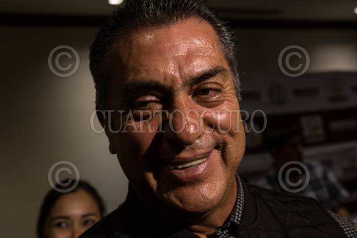 CIUDAD DE MÉXICO, 04JUNIO2018.- Jaime Rodríguez "El Bronco", candidato independiente a la presidencia del país, durante su llegada y salida a la reunión con empresarios en el Club de Empresarios Bosques. FOTO: TERCERO DÍAZ /CUARTOSCURO.COM