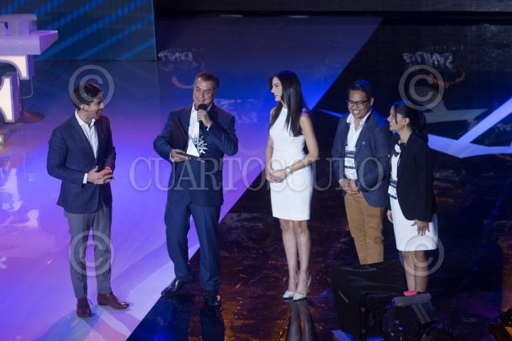 La productora Magda Rodríguez murió a los 57 años, así lo informó Televisa, empresa donde trabajaba. La imagen corresponde al 14 de abril de 2009, en ella se observa a la productora con el actor Leonardo García, durante la presentación del programa "El Gran Desafío". FOTO: MOISÉS PABLO/CUARTOSCURO.COM