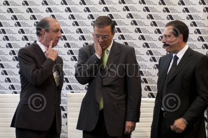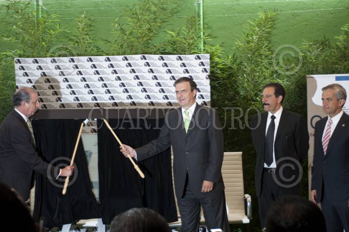 MÉXICO D.F., 05JULIO2011.- Marcelo Ebrard Casaubon, Jefe del Gobierno capitalino, acompañado de Lourdes Sarvide Álvarez Icaza, Representante de las Instituciones de Asistencia Privada Consejera Titular del Rubro de Discapacidad y Rehabilitación, Rogelio Casas Alatriste Presidente de la Junta de Asistencia Privada del Distrito Federal, Elías Miguel Moreno Brizuela, Secretario de Protección Civil del Gobierno del Distrito Federal, Miguel Ángel Macera, Procurador del D.F. encabezo la ceremonia de inauguración del Centro de Capacitación e Información del Sector Social de la Junta de Asistencia Privada del DF. El jefe de gobierno se retira lapíz labial momentos antes de emitir su mensaje. FOTO: GUILLERMO PEREA/CUARTOSCURO.COM