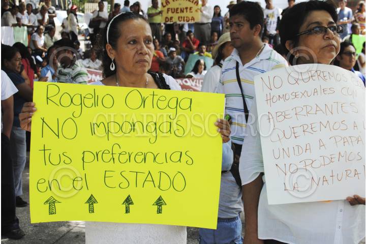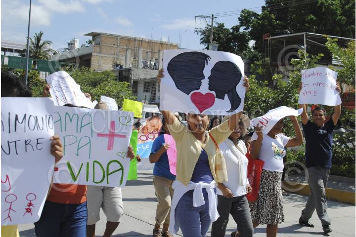 CHILPANCINGO, GUERRERO, 19JULIO2015.- Cientos de personas marcharon del parque Margarita Maza de Juárez al zócalo de esta ciudad con pancartas en las que rechazaron los matrimonios entre personas del mismo sexo y defendieron el matrimonio entre mujer y hombre. FOTO: JOSÉ I. HERNÁNDEZ /CUARTOSCURO.COM