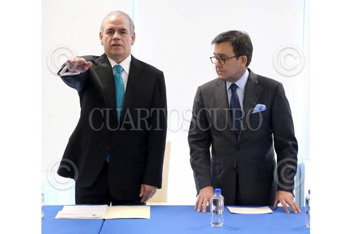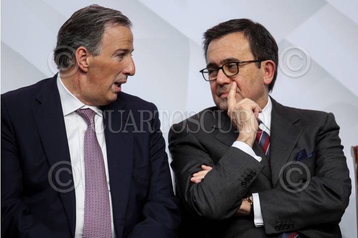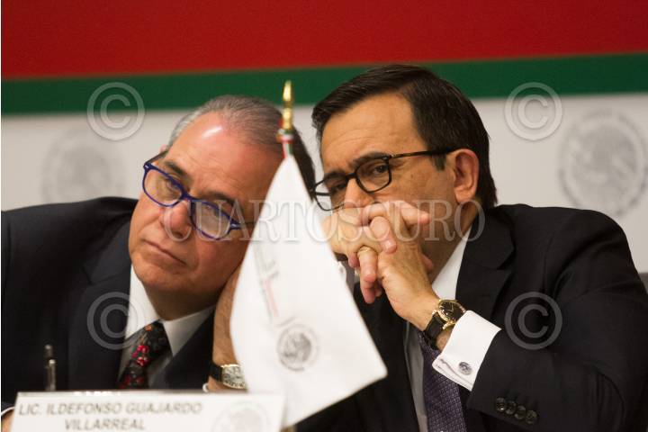 CIUDAD DE MÉXICO, 18OCTUBRE2017.- José Antonio Meade Kuribreña, secretario de Hacienda y Crédito Público,e Ildefonso Guajardo, secretario de Economía, durante la conferencia de prensa para anunciar la edición 2017 del Buen Fin, programa de descuentos en toda la República. FOTO: GALO CAÑAS /CUARTOSCURO.COM