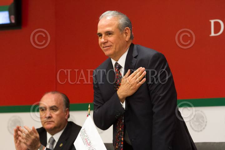 CIUDAD DE MÉXICO, 14AGOSTO2017.- El Secretario de Economía, Ildefonso Guajardo Villarreal, dio posesión a Rogelio Cerda Pérez como Procurador Federal del Consumidor, quien fue designado por el Presidente de la República, Enrique Peña Nieto. Rogelio Cerda Pérez es candidato a Doctor en Derecho por la Universidad de Washington; Maestro en Derecho Internacional (Comercio) y en Jurisprudencia Comparada por la Universidad de Texas en Austin, y Licenciado en Derecho por la Universidad Autónoma de Nuevo León. FOTO: SE /CUARTOSCURO.COM